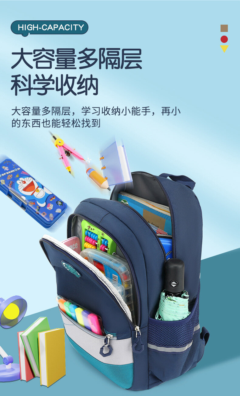 Сумка Babudou, для начальной школы, ультралегкая, вместительная, синяя, красная, желтая