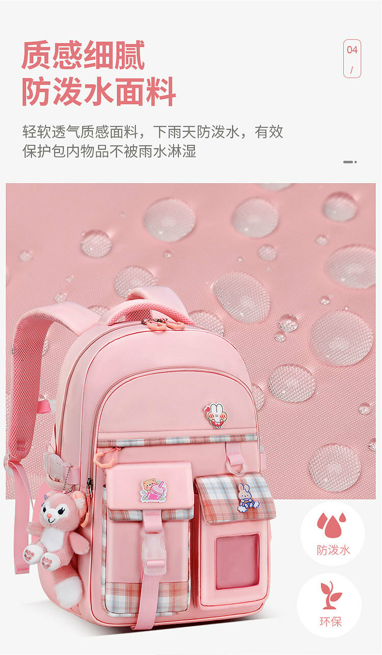 Рюкзак школьный, розовый, с куклой и значком, для девочек, 10 слов