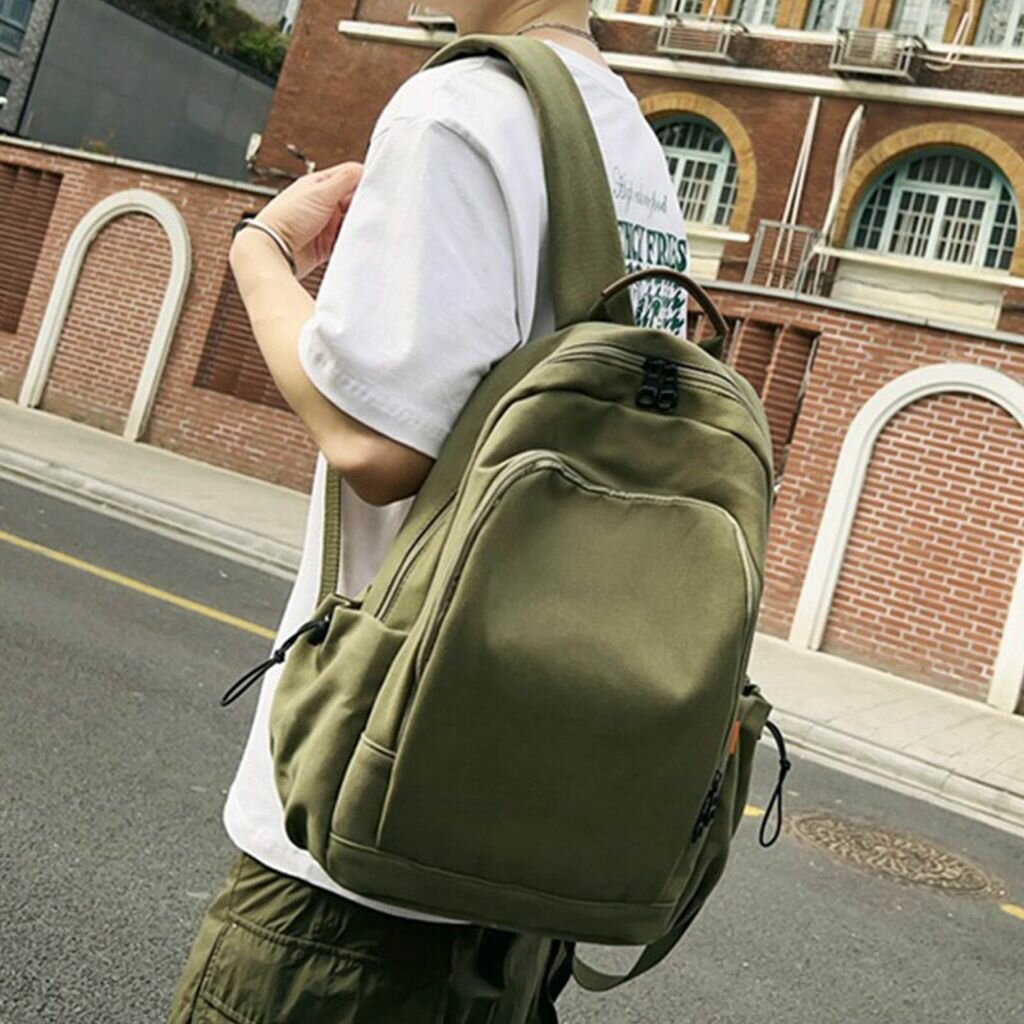 Простая однотонная школьная сумка для ученика-зеленый