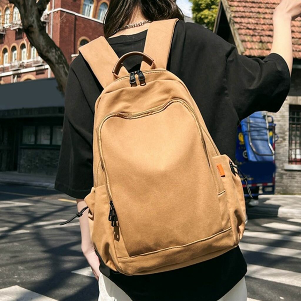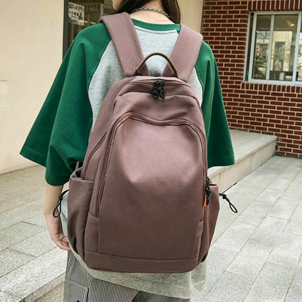 Простая однотонная школьная сумка для ученика-коричневая