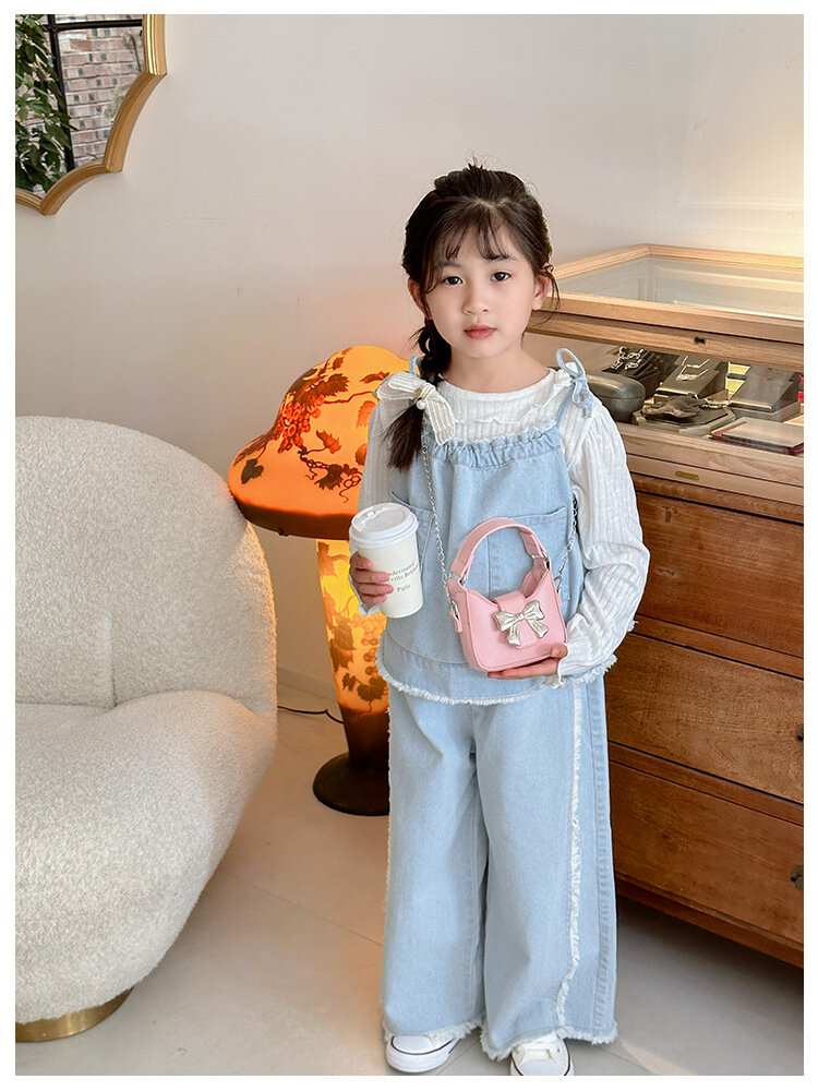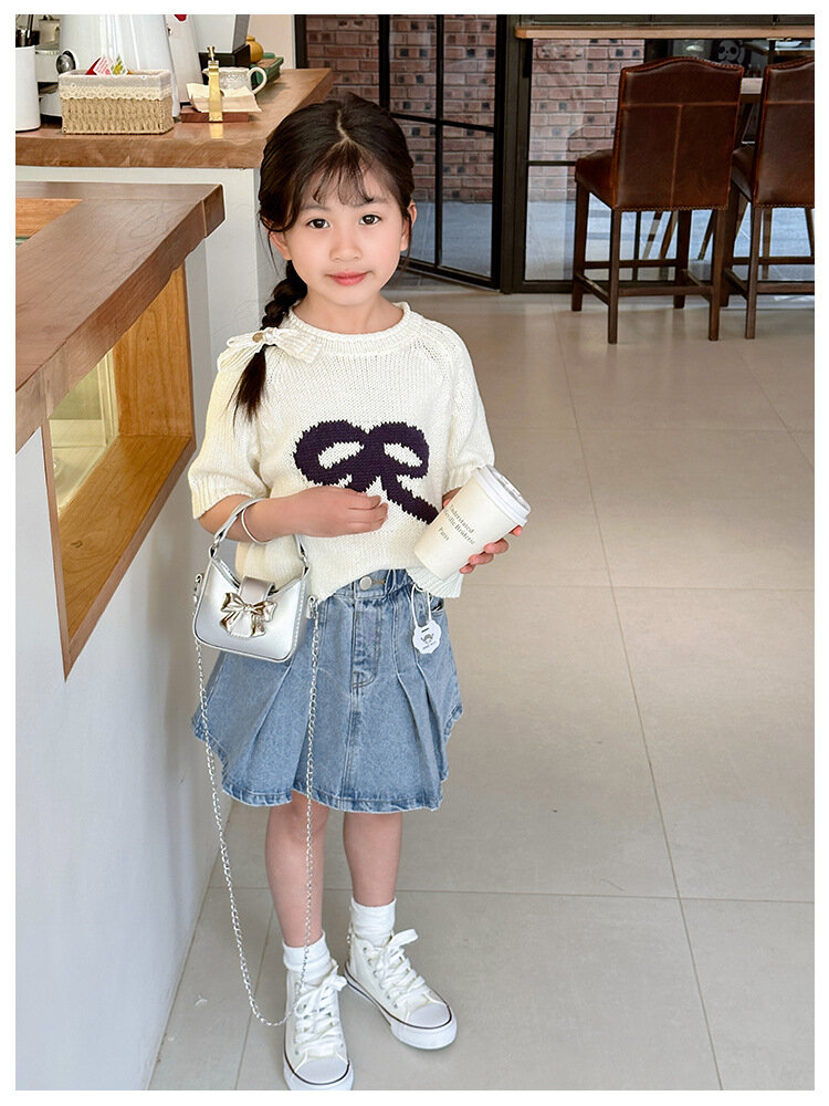 Сумка-мессенджер, для девочек, с бантом, на цепочке, белая