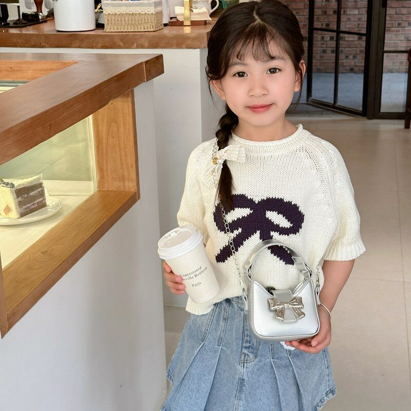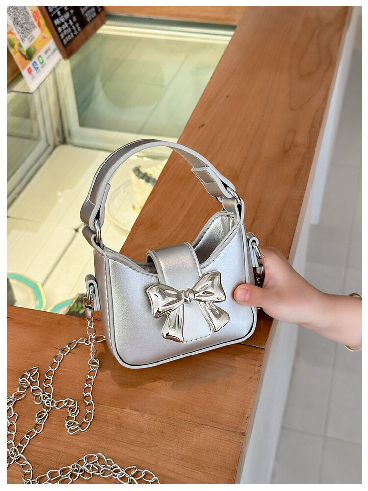 Сумка-мессенджер, для девочек, с бантом, серебристая интересное: