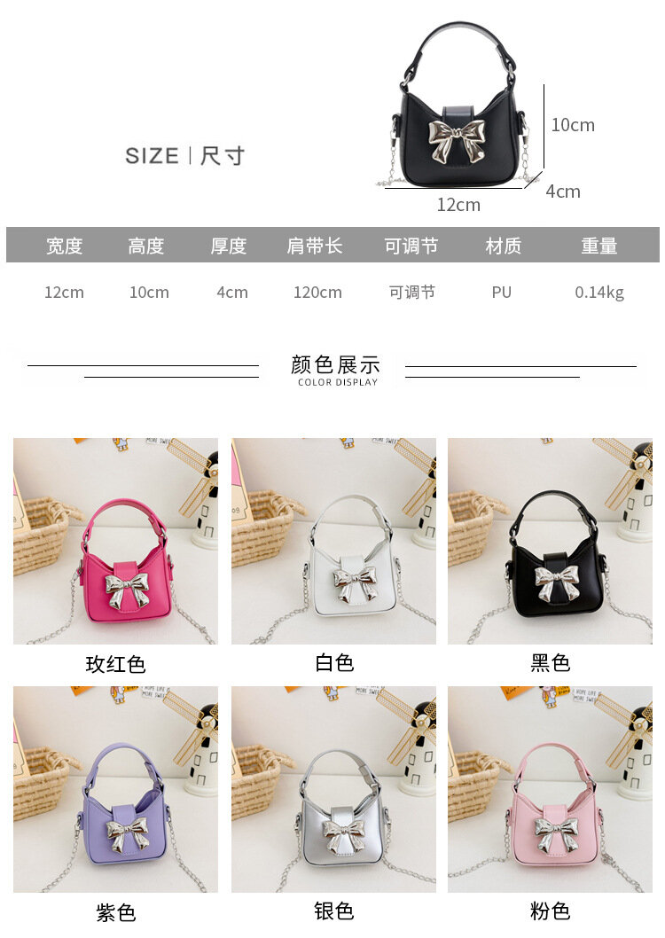 Сумка-мессенджер, для девочек, с бантом, на цепочке, черная