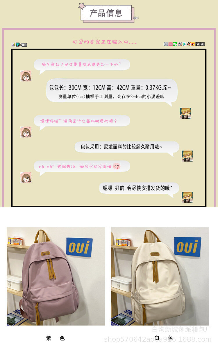 Рюкзак, для студенток, оксфордская ткань, белый