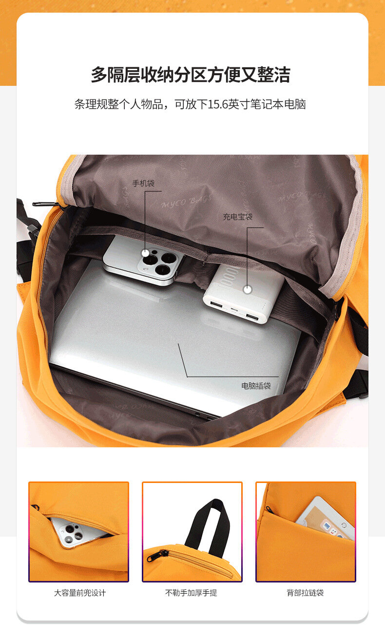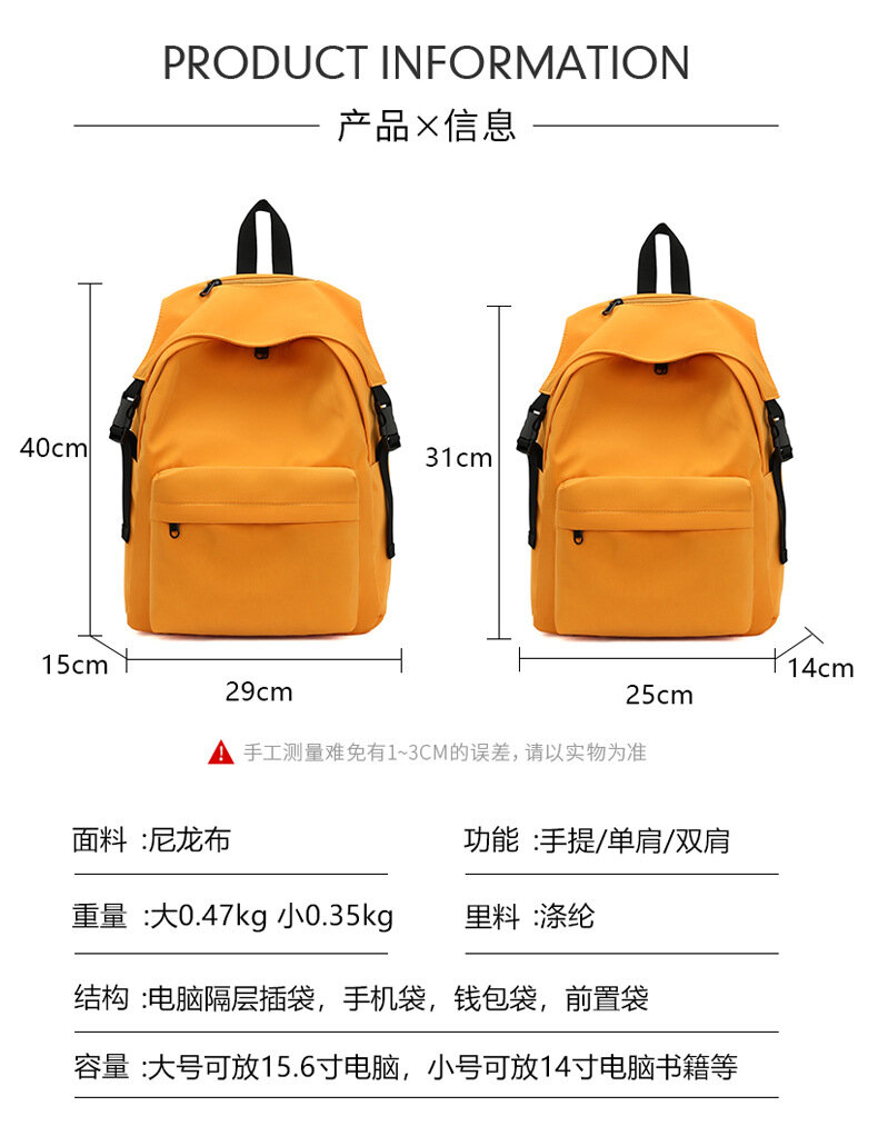 Рюкзак, японский, нейлон, желтый, для старшеклассниц и студенток