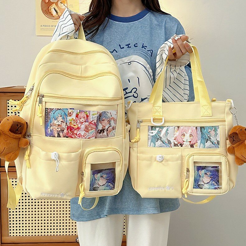 Сумка школьная Ins, желтая, двойная спинка, с подвеской