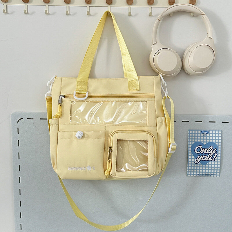 Сумка школьная Ins, желтая, одно плечо, с подвеской
