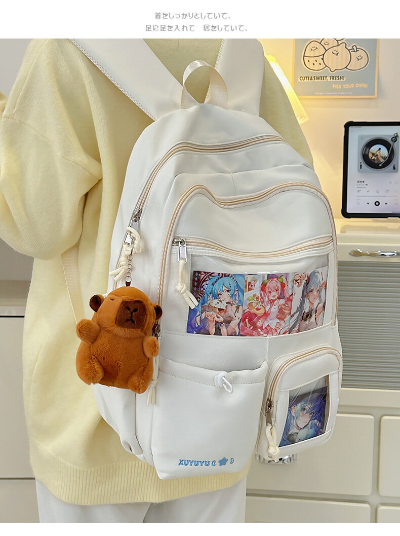 Сумка школьная Ins, белая, двойная спинка, с подвеской