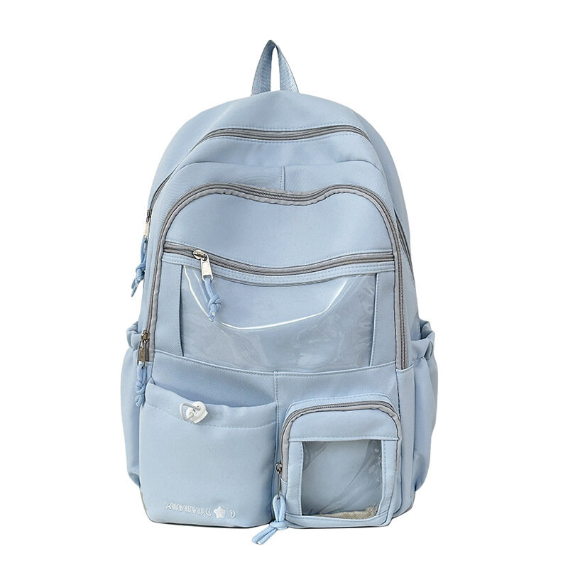 Сумка школьная Ins, синяя, двойная спинка, с подвеской