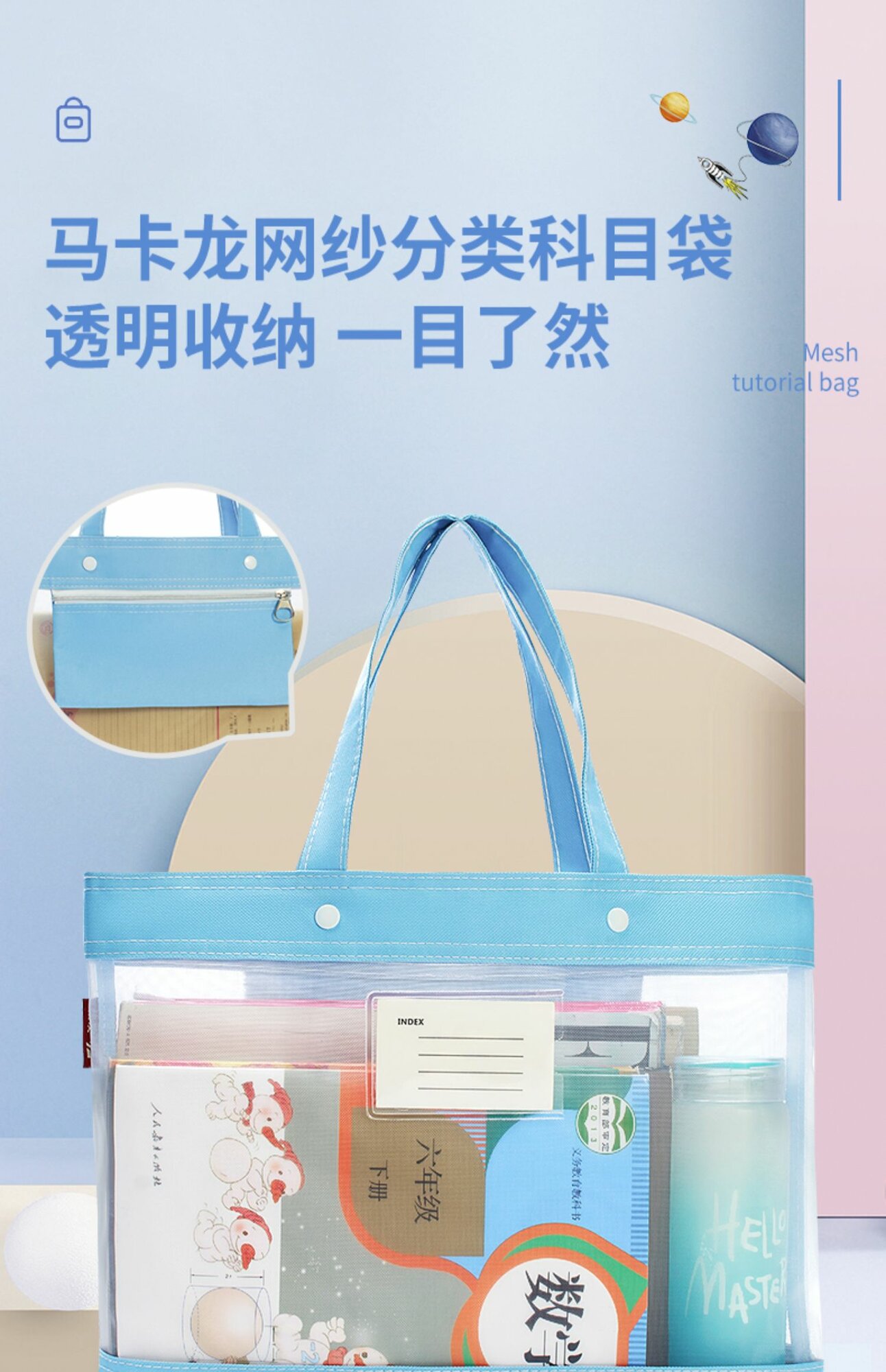 Студенческая сумка-шоппер Morandi с сеткой и молнией - Макарон-светло-синий