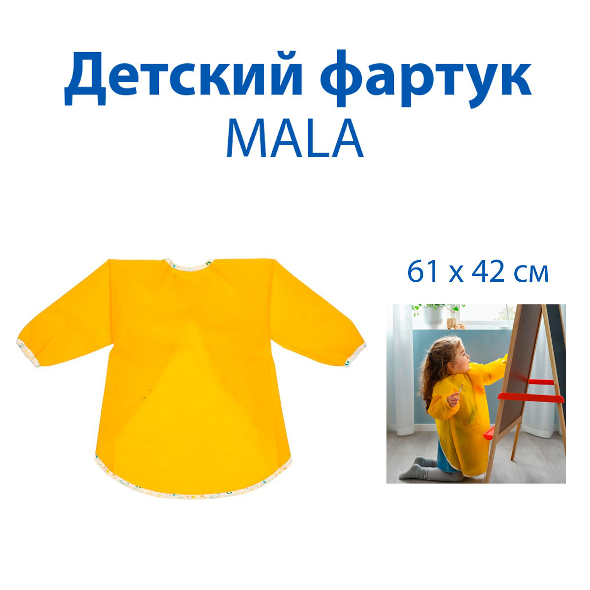 Детский фартук IKEA - MALA (мола), желтый, с длинными рукавами, 61х42 см, 1 шт интересное: