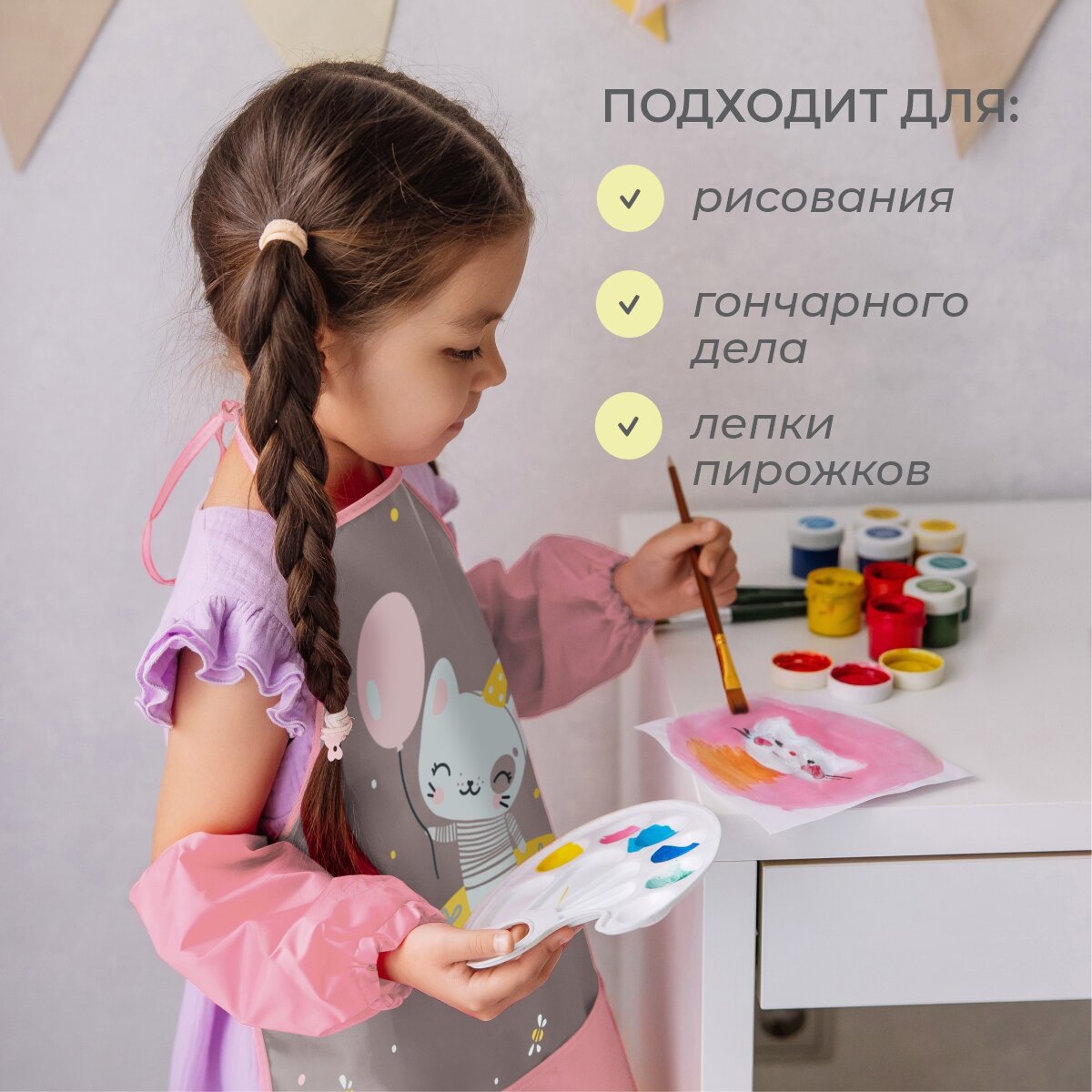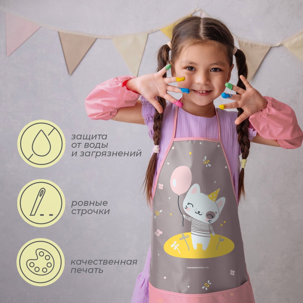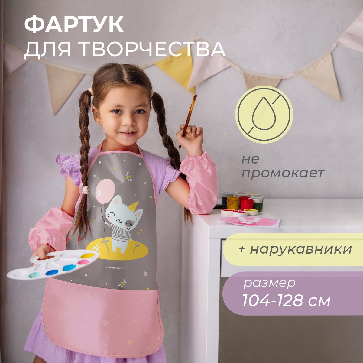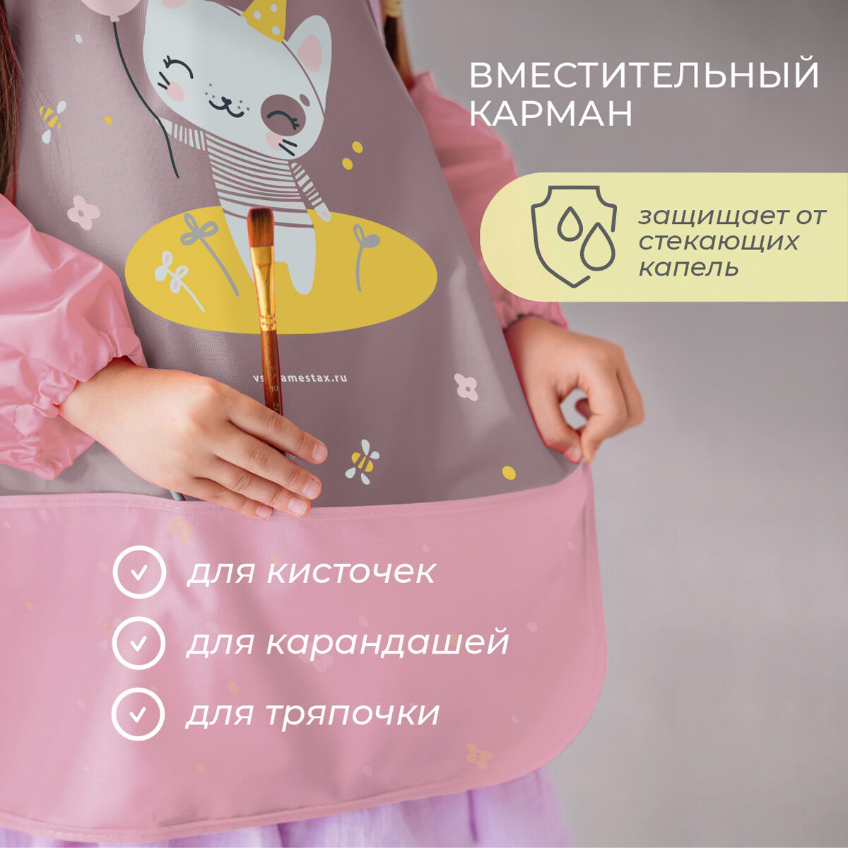 Набор фартук, нарукавники Котик (серый) интересное:
