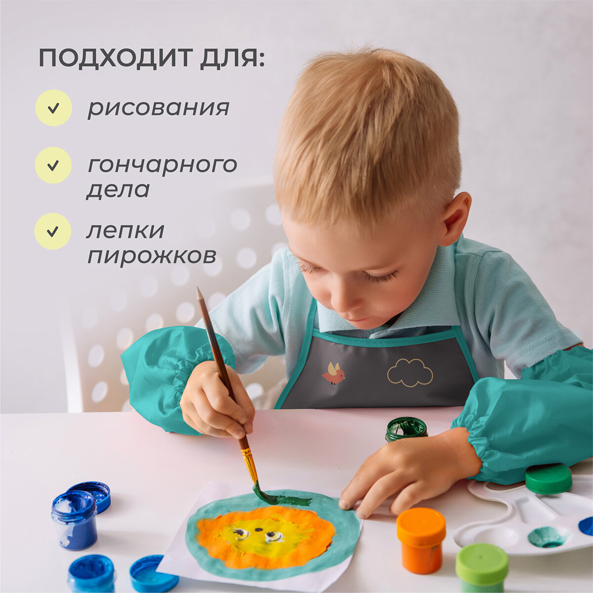 Набор фартук и нарукавники Львенок (серый) интересное: