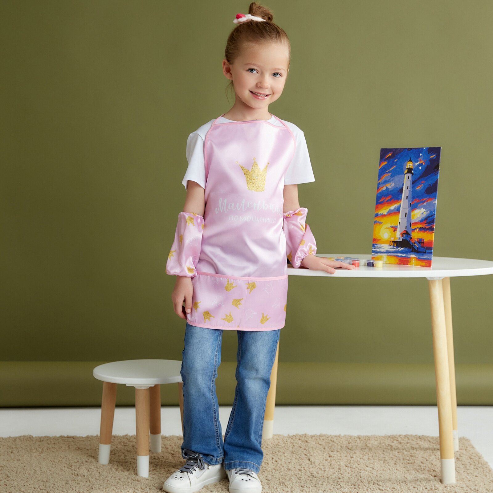 Купить Набор детский для творчества Этель "Помощница" фартук 49 х 39 см и нарукавники