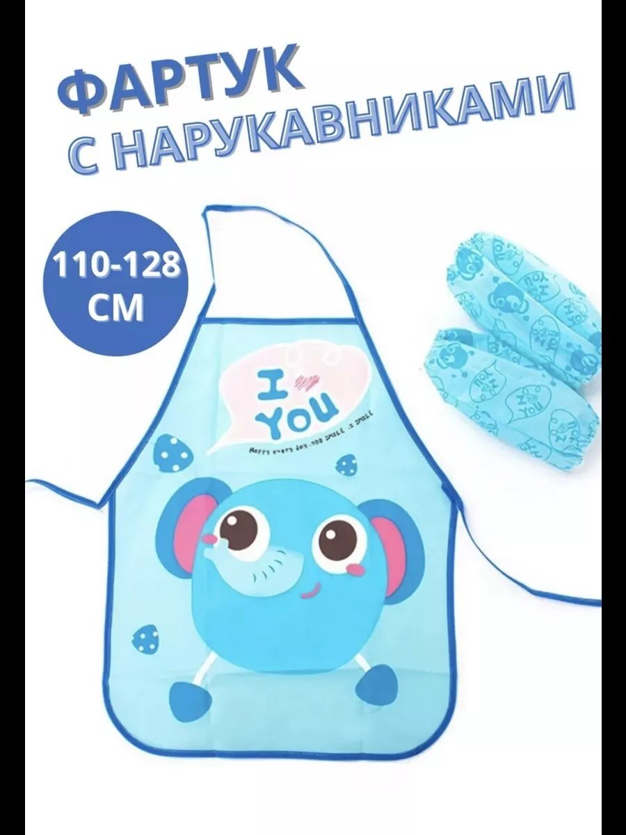 Фартук с нарукавниками Уроки труда, полиэстер, водоотталкивающая ткань, голубой интересное: