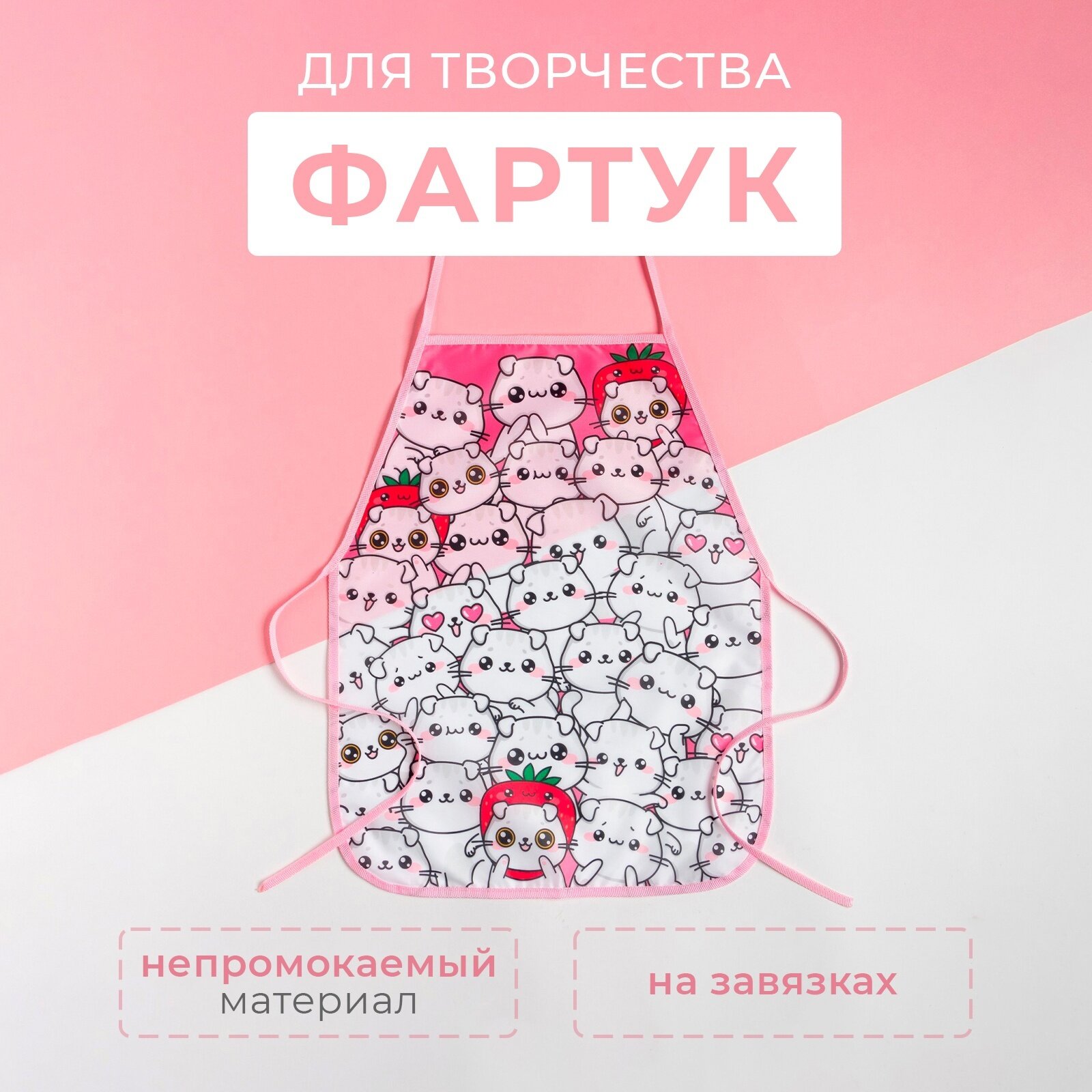 Фартук Этель "Happy Cats", детский, полиэстер, 49x39 см, розовый интересное: