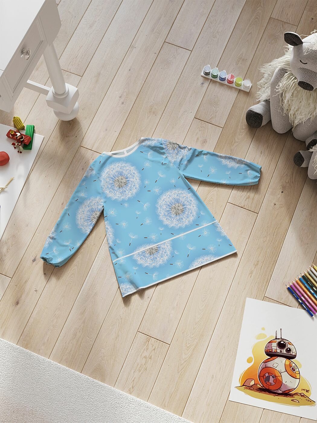 Фартук детский "Море одуванчиков" с рукавами для рисования от 1 до 2 лет. интересное: