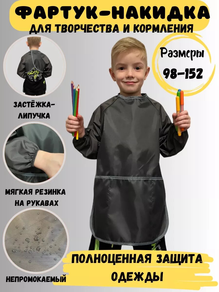 Фартук для рисования и творчества детский с рукавами