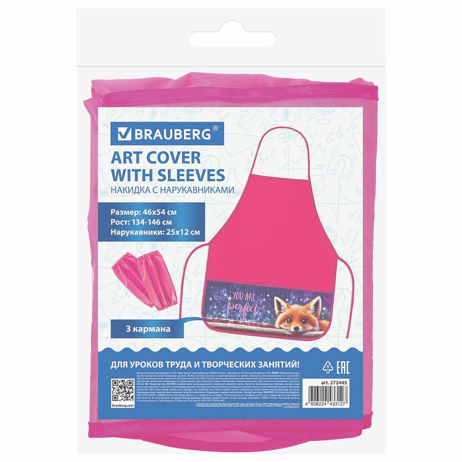 Фартук с нарукавниками Brauberg "Cute fox" для труда, 3 кармана, 46x54 см (272445) интересное:
