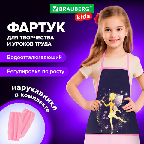 Купить Комплект 2 шт, Накидка фартук с нарукавниками для труда BRAUBERG KIDS, 2 кармана, 46x54 см, "Gold fairy", 272452