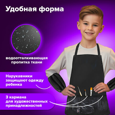 Накидка фартук с нарукавниками для труда BRAUBERG, 3 кармана, 46x54 см, Night Racer, 271635 интересное: