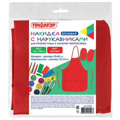 Комплект 2 шт, Фартук с нарукавниками для уроков труда пифагор, увеличенный размер, 45х60 см, красный, 228362 интересное: