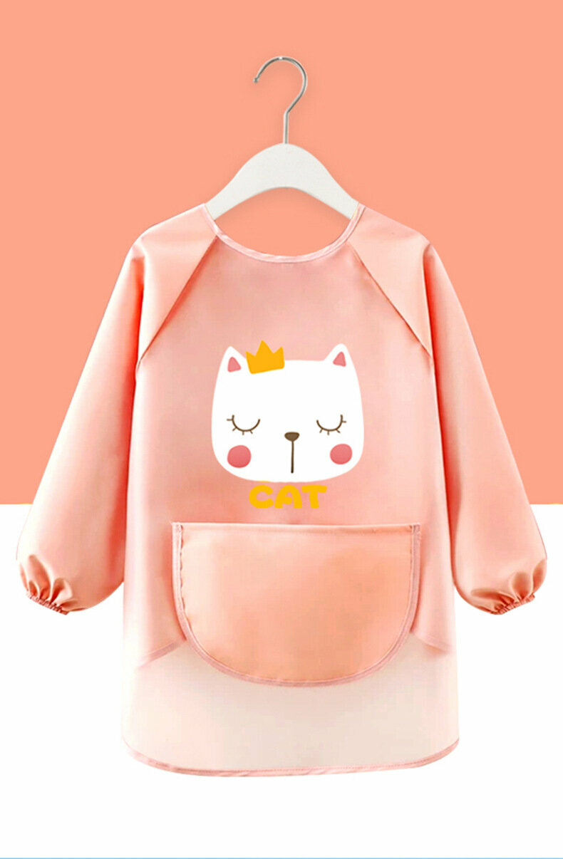Фартук "Розовый котенок", с длинными рукавами, водонепроницаемый, для детского сада