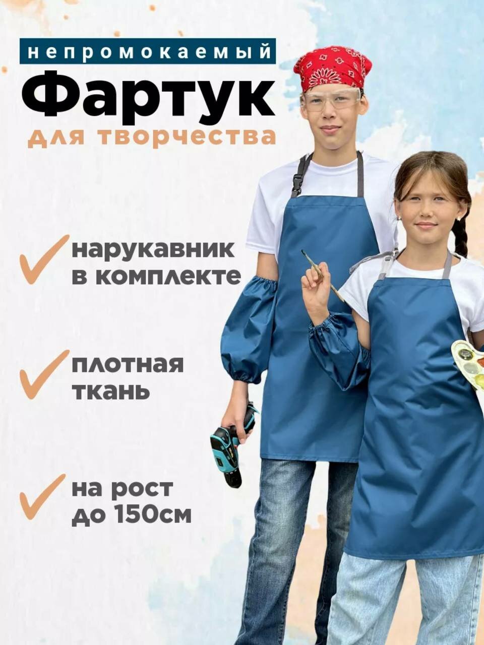 Фартук детский водоотталкивающий с нарукавниками для творчества, рисования, урока труда, синий