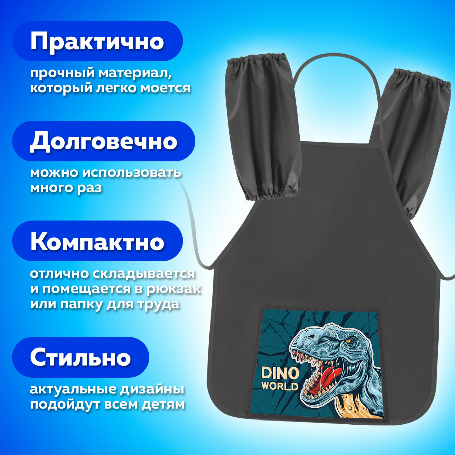 Накидка фартук с нарукавниками для труда пифагор, 1 карман, 46х54 см, "Dino world", 272462 интересное:
