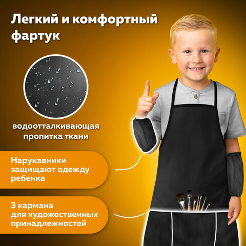 Купить Комплект 17 шт, Фартук с нарукавниками для труда и занятий творчеством пифагор, 44х55 см, черный, 271094