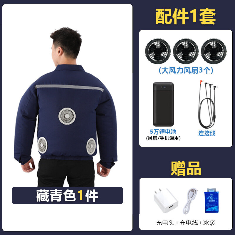 Одежда для кондиционирования, с тремя вентиляторами, темно-синяя, размер L