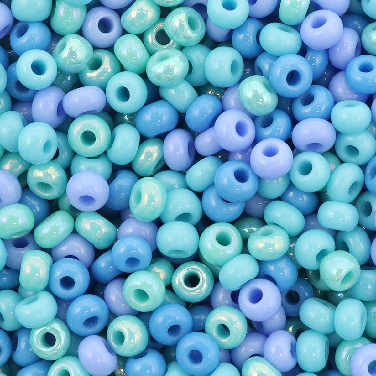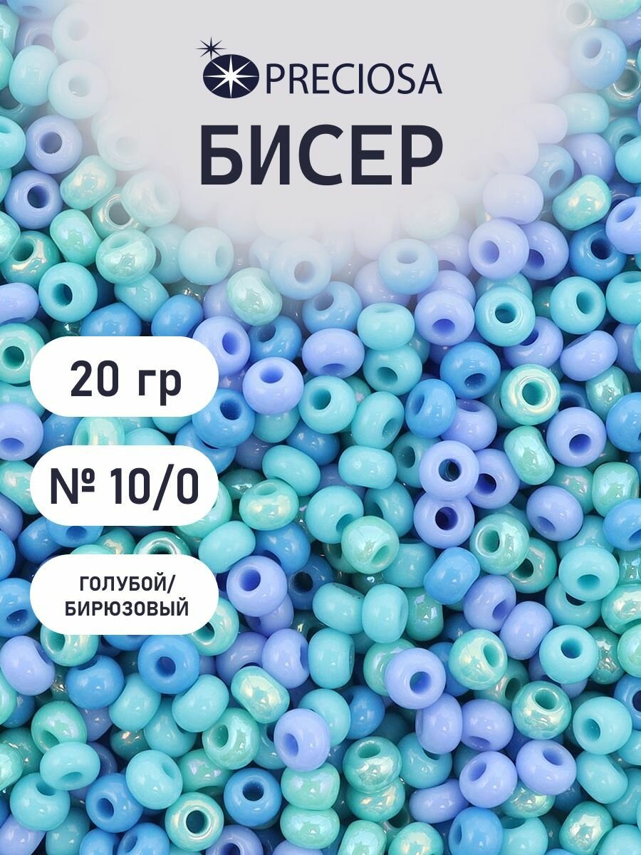 Купить Бисер чешский Preciosa 10/0 (2,3 мм), 20 г, 4 цвета, ассорти № 8 (голубой, бирюзовый)