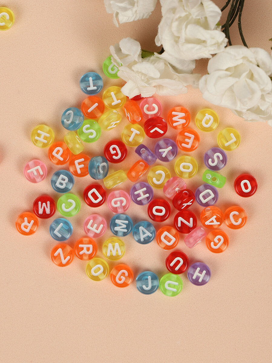 Бусины для браслетов с английскими буквами разноцветные арт. M4H-B010 уп.500г