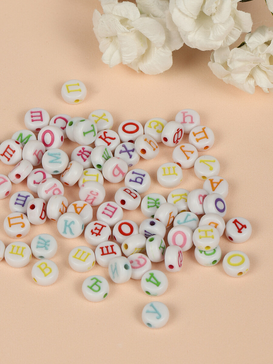 Бусины для браслетов с русскими буквами разноцветные арт. M4H-B001 уп. 40г (300 ± 10 шт)