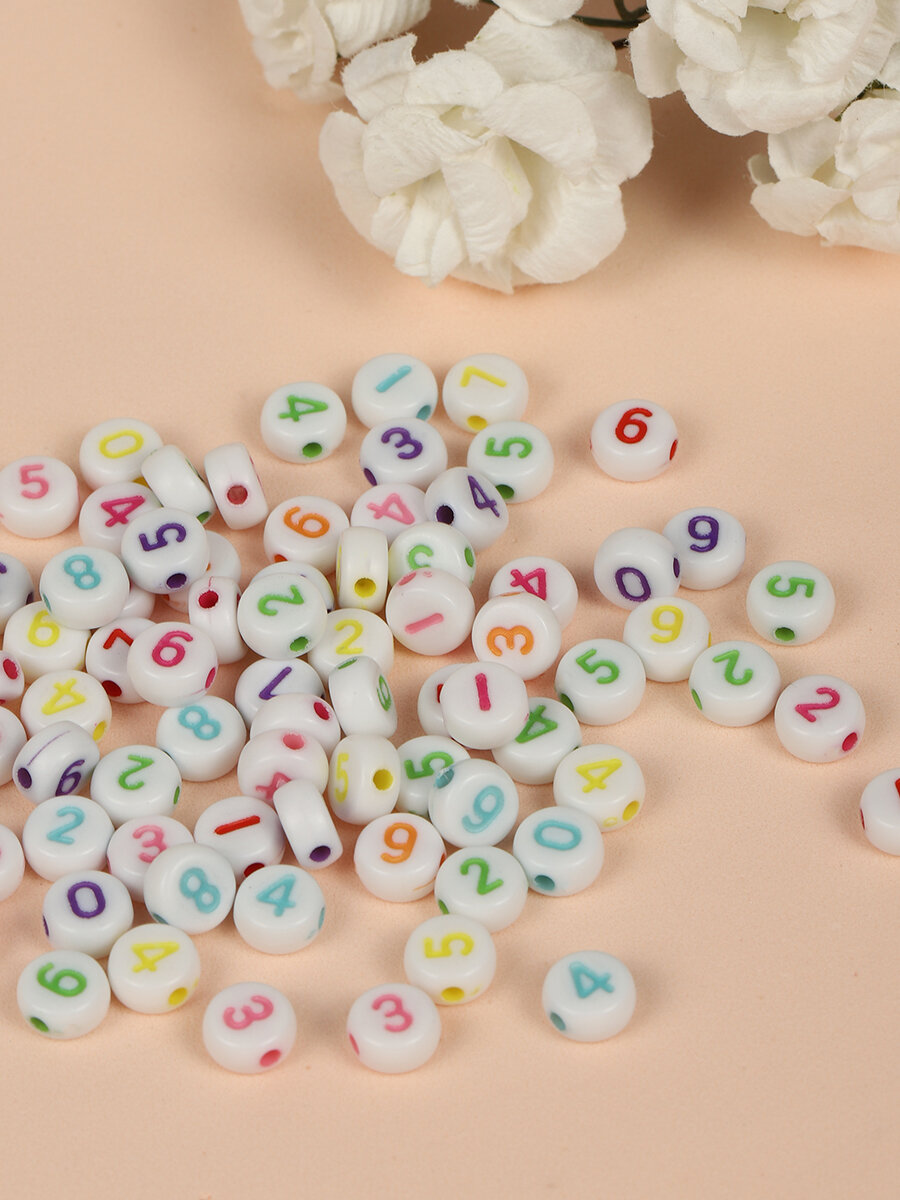 Бусины для браслетов цифры разноцветные арт. M4H-B005 уп.500г