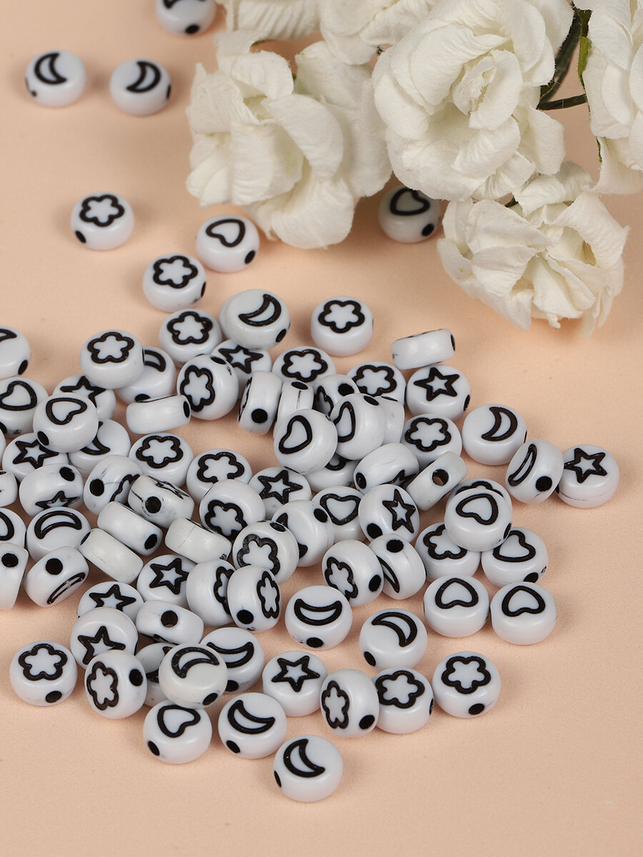 Купить Бусины для браслетов фигурки черно-белые арт. M4H-B008.1 уп.500г