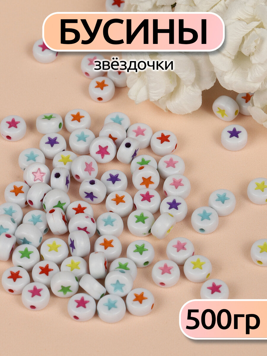 Купить Бусины для браслетов звездочки разноцветные арт. M4H-B013 уп.500г