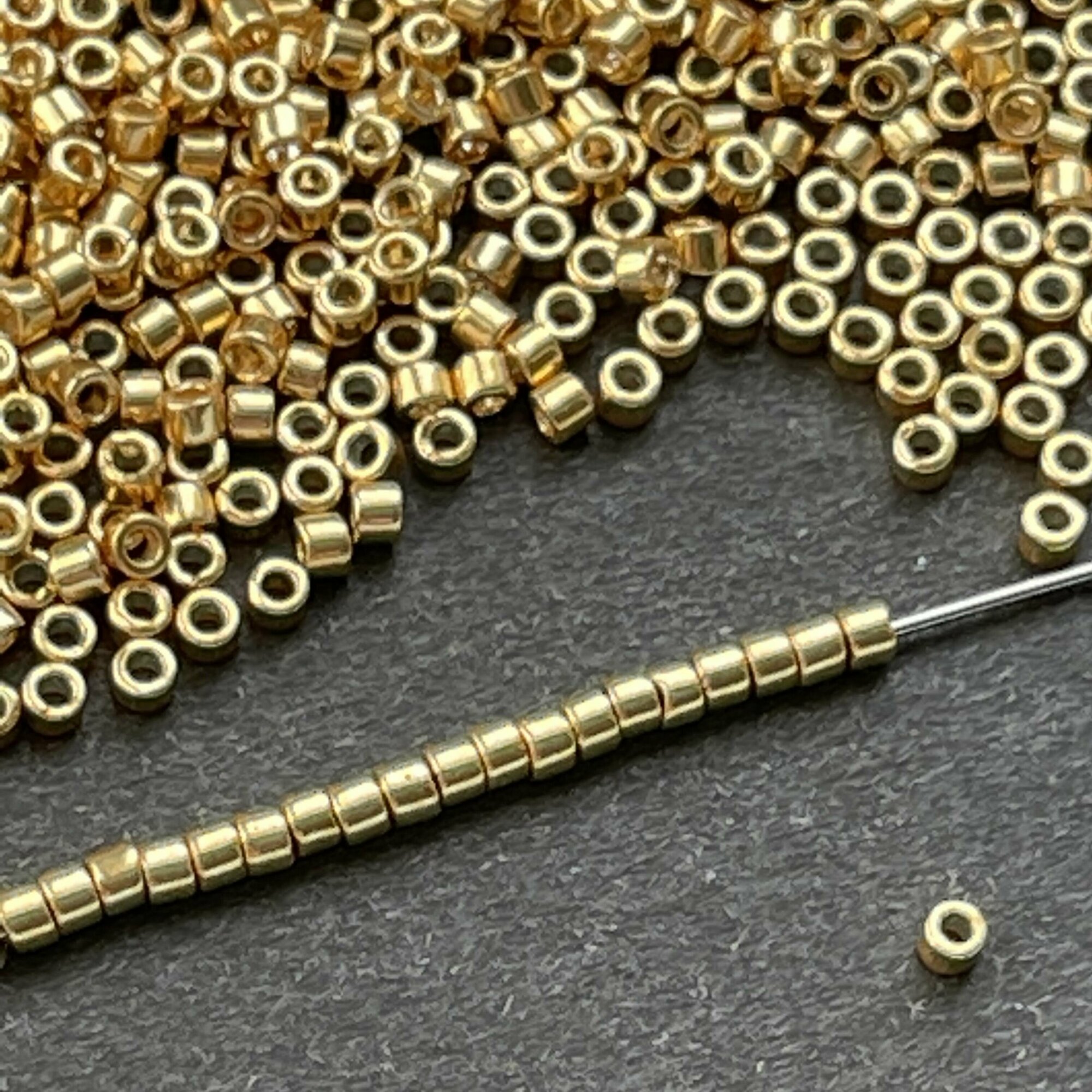 Бисер японский Miyuki Delica цилиндрический, 5гр, 11/0 DB-0410, Миюки Делика желтое золото, гальванизированный интересное: