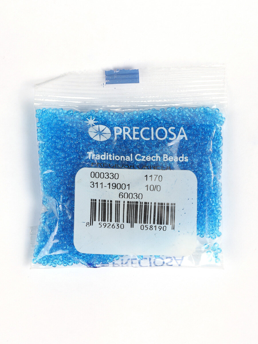 Бисер чешский PRECIOSA круглый 10/0 60300 синий прозрачный, 1 сорт, 50г