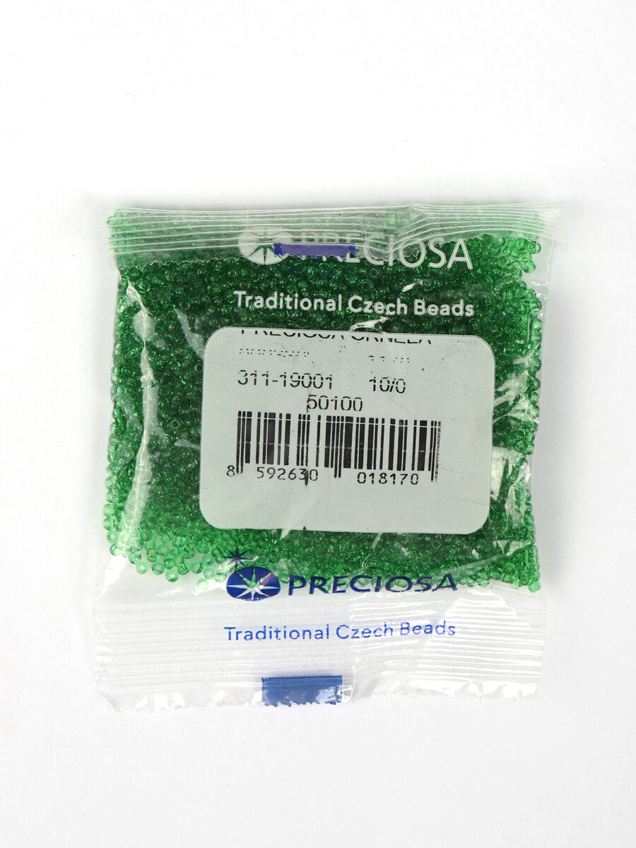 Бисер чешский PRECIOSA круглый 10/0 50120 зеленый прозрачный, 1 сорт, 50г