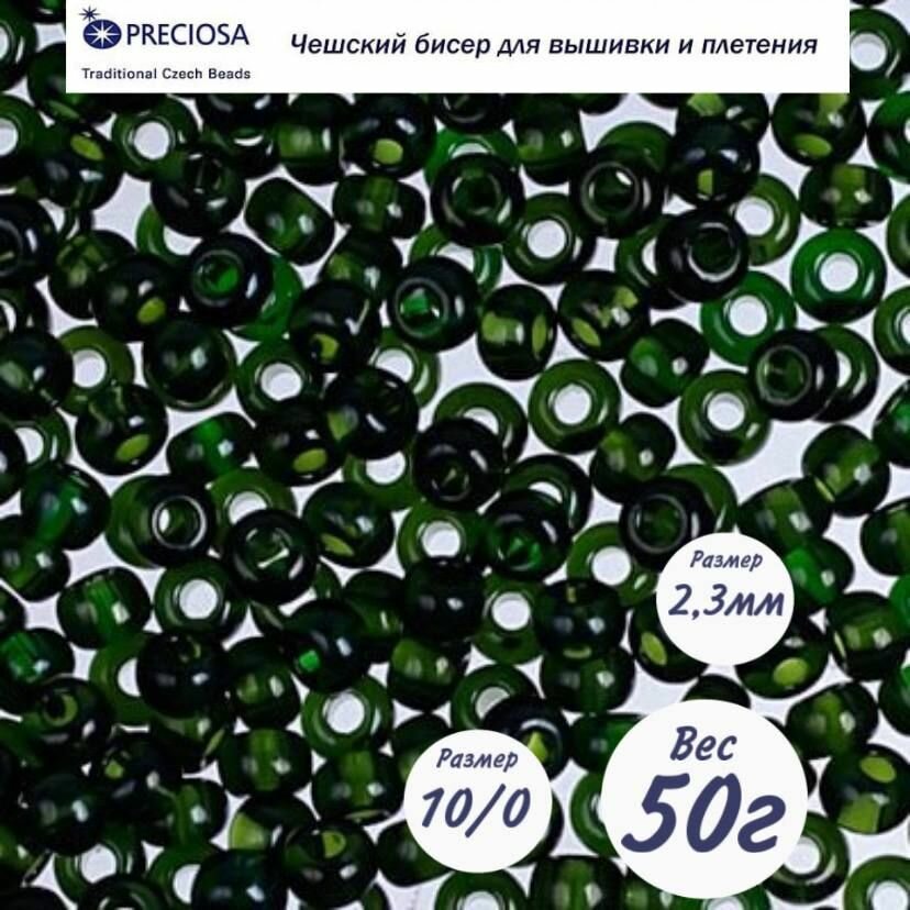 Бисер чешский PRECIOSA круглый 10/0 50120 зеленый прозрачный, 1 сорт, 50г