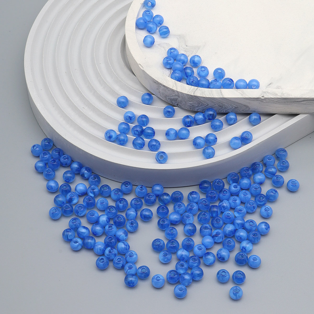 Набор пластиковых бусин "Астра" с покрытием АВ (имитация жемчуга), пластик, 8мм, 25 гр, серо-голубой