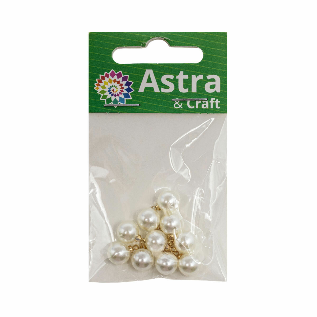 Бусины Astra&Craft "Жемчуг", пластиковые, с золотистой петелькой, белые, круглые, 10 мм, 4AR299, 8 шт