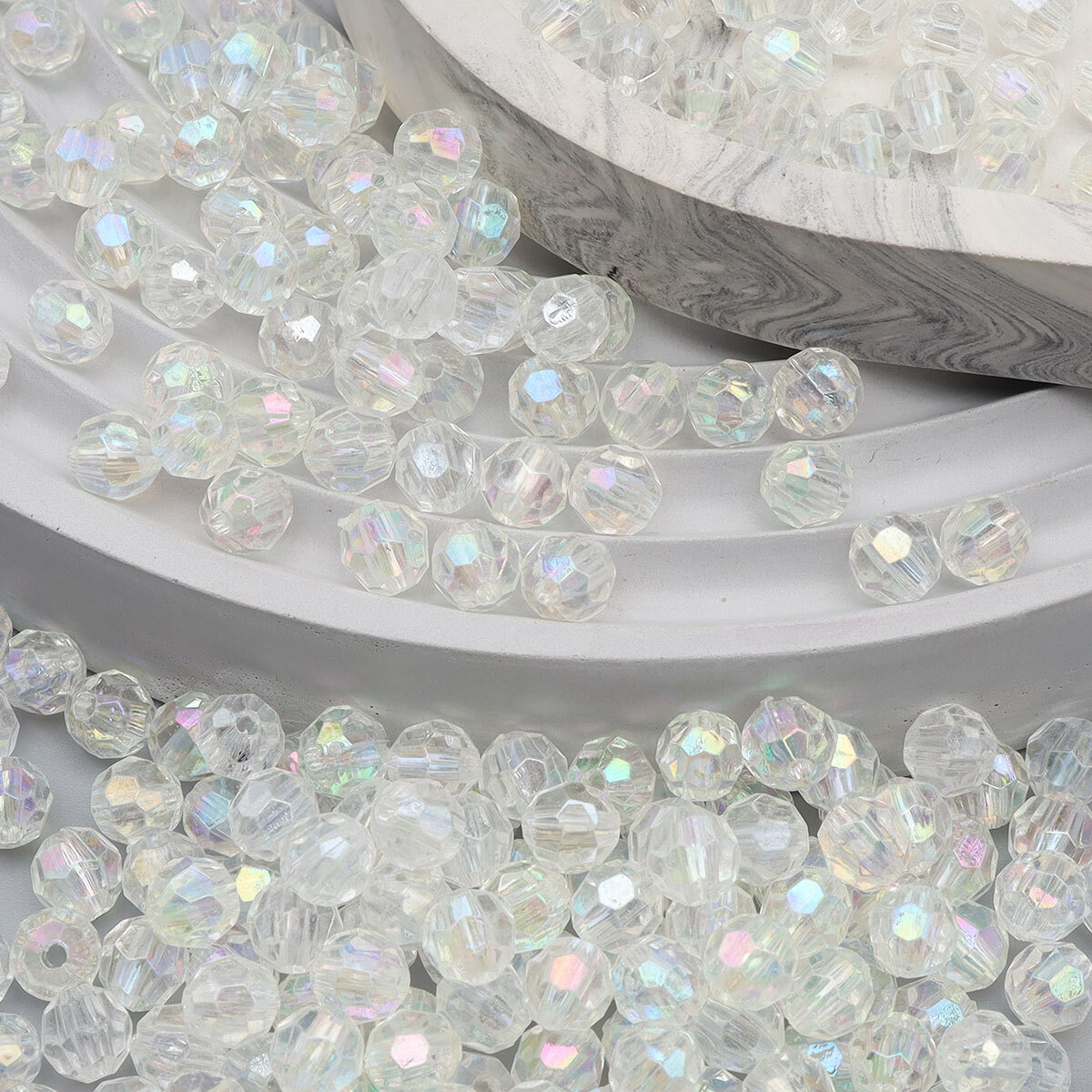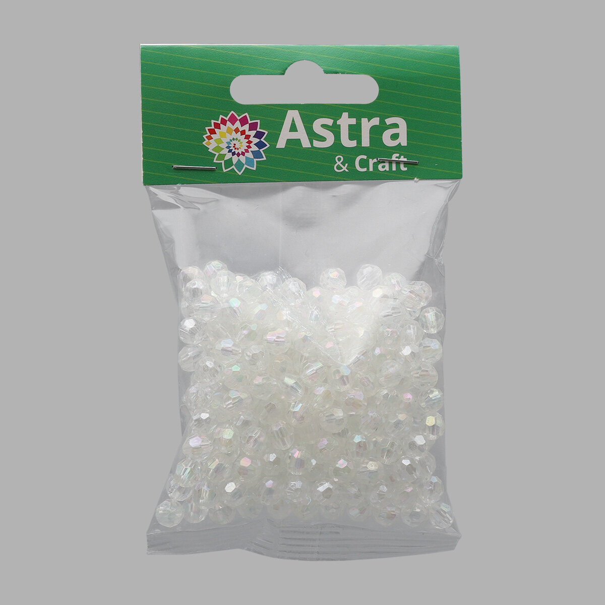 Бусины Astra&Craft Пластиковые, акрил, прозрачные, граненые, круглые, 8 мм, цвет 1AB, голограмма, 25 г