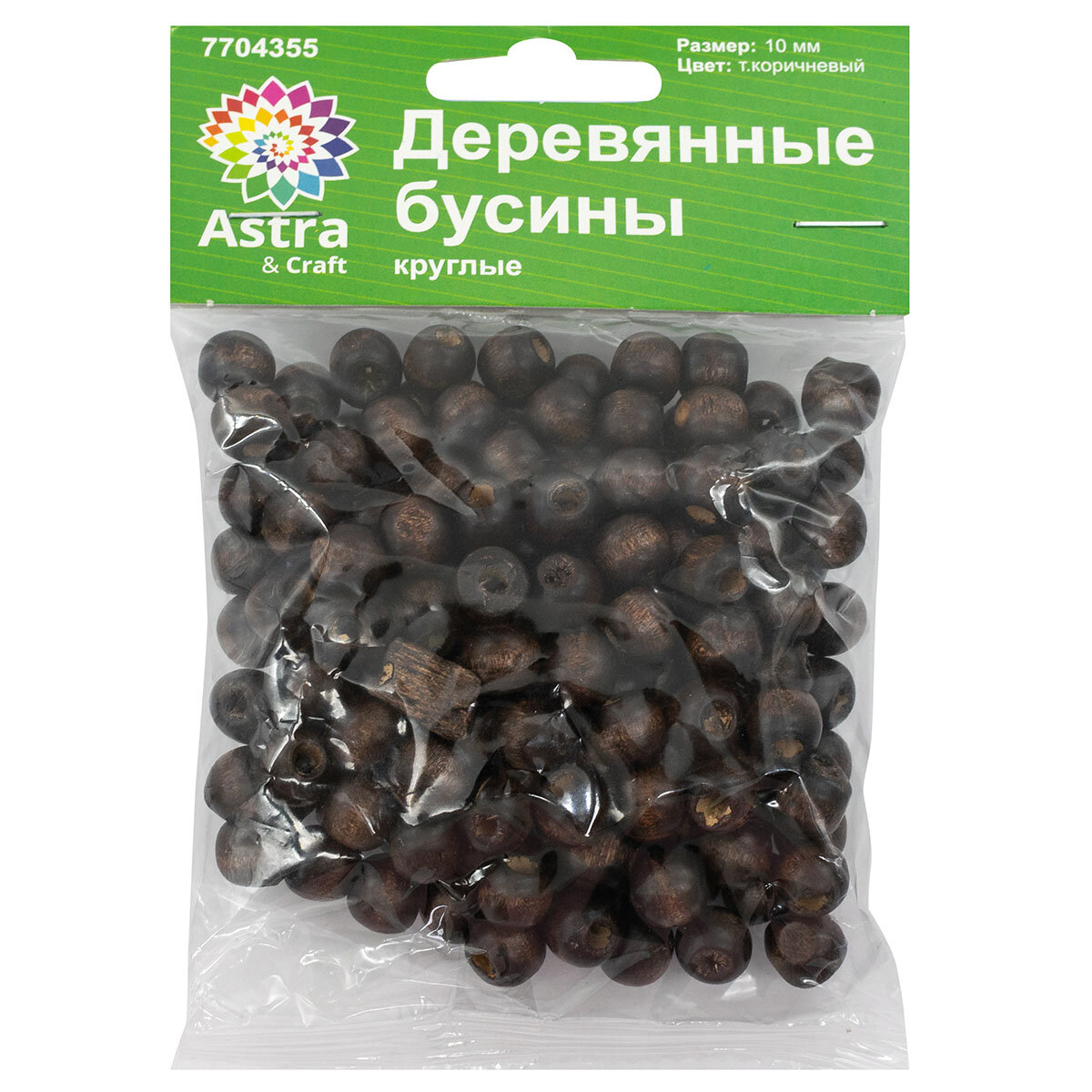 Бусины деревянные круглые Astra&Craft, 10 мм, 160 (± 5) шт, 50 г (коричневый)