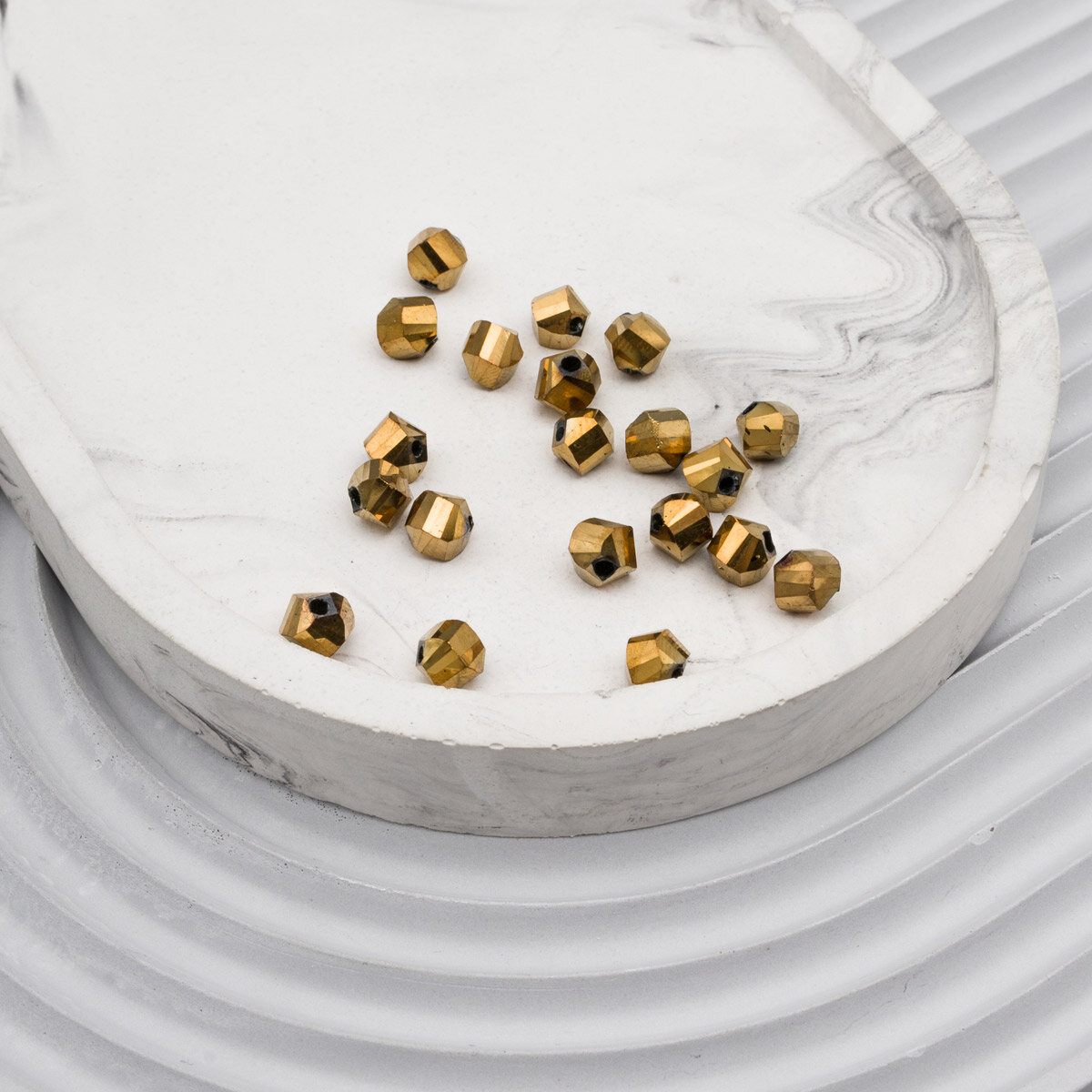 Купить Бусины для рукоделия из цветного стекла гранёные с гальваникой Спираль 6 мм, 20 шт, (3-золото) Astra&Craft (11332)