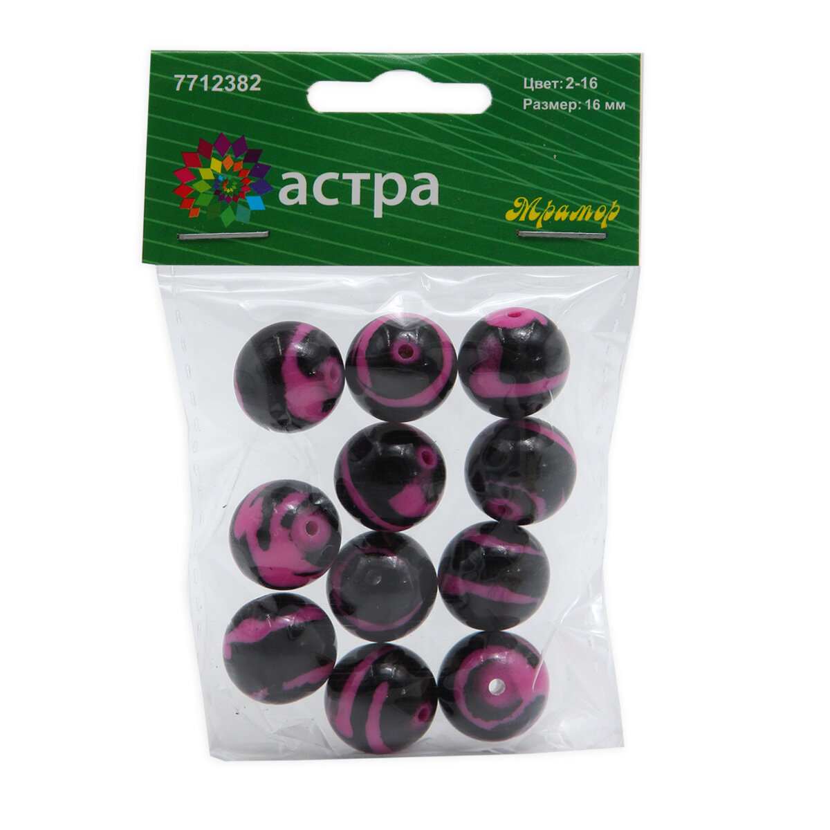 СохранитьБусины для рукоделия пластиковые, 'мрамор', 16 мм, 11 шт, Astra&Craft (2-16 розовый/черный) интересное: