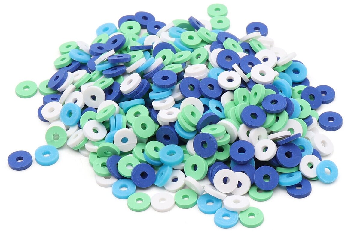 Купить Бусины для рукоделия плоские из полимерной глины 6мм 20г, Astra&Craft (B3 синий, зеленый, белый микс)
