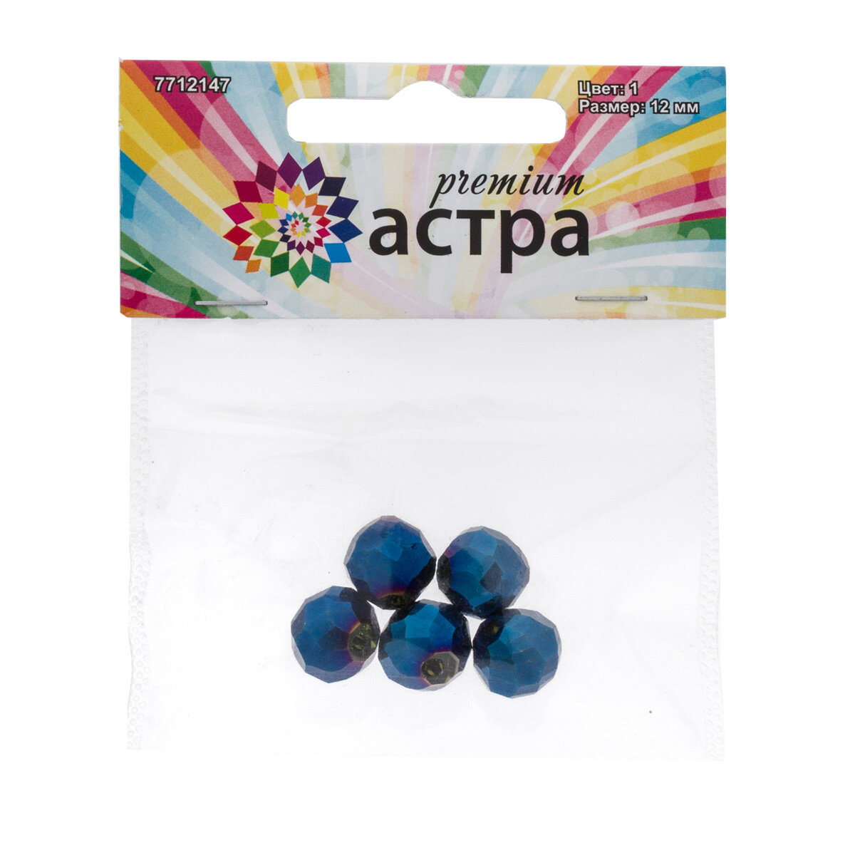 Бусины для рукоделия из цветного стекла с гальваникой круглые 12 мм, 5 шт (5-радужный) Astra&Craft (11394)