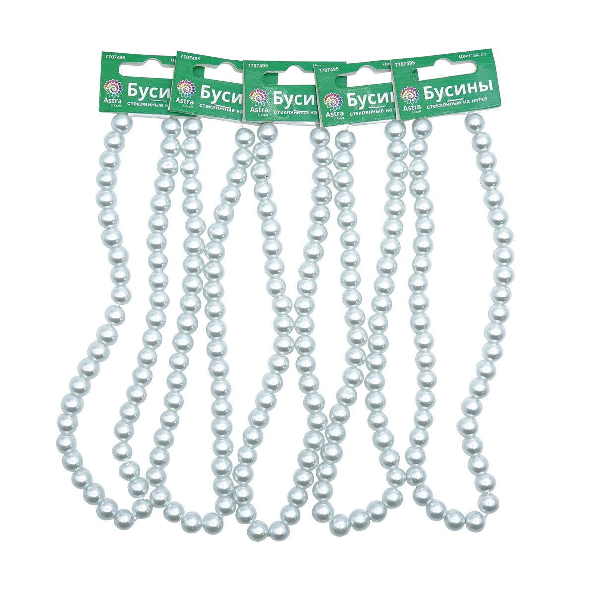 Бусины для рукоделия стеклянные на нитке, 10 мм, длина 40 см, Astra&Craft (SA-06 жемчужный), 5 шт